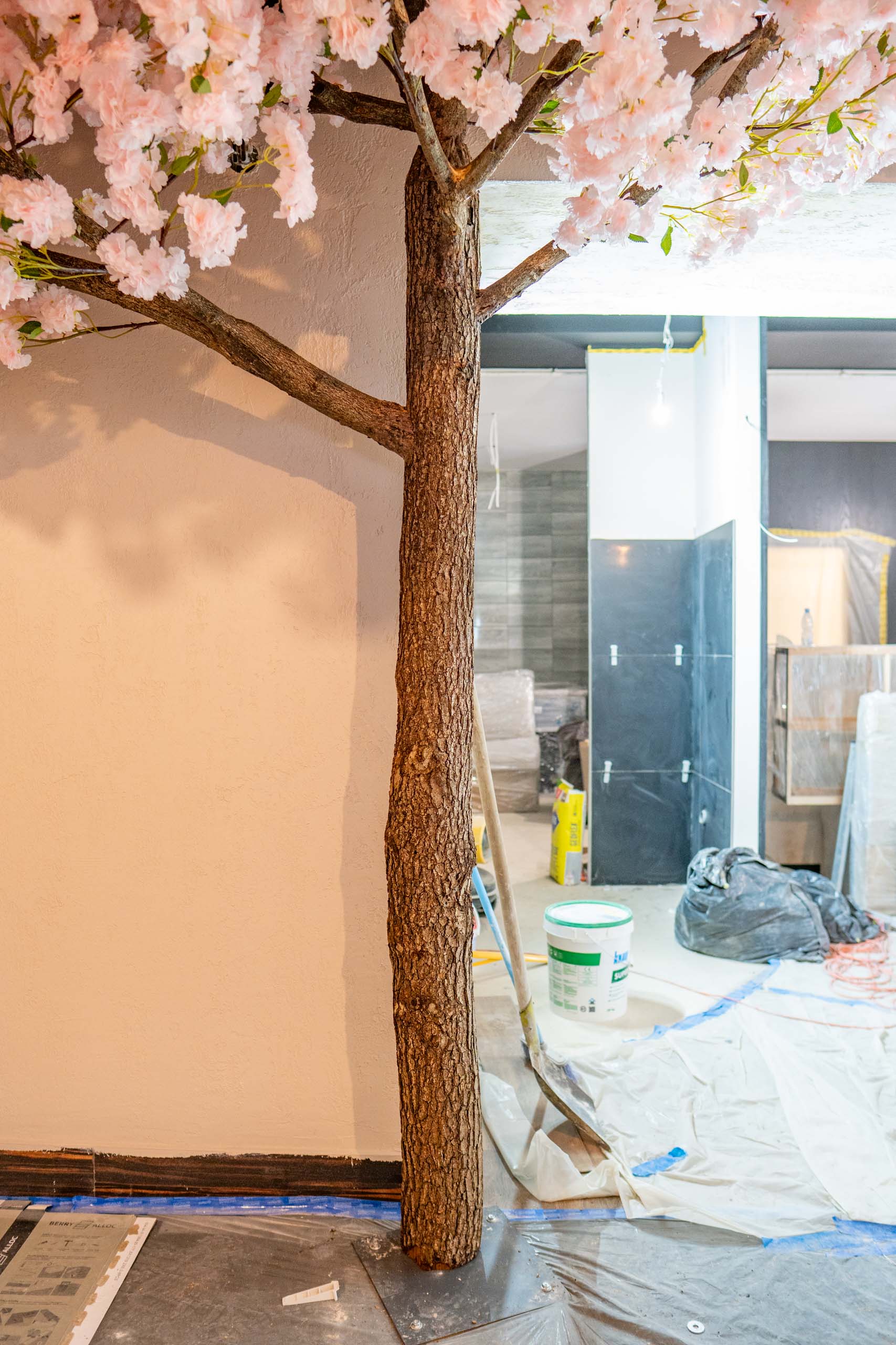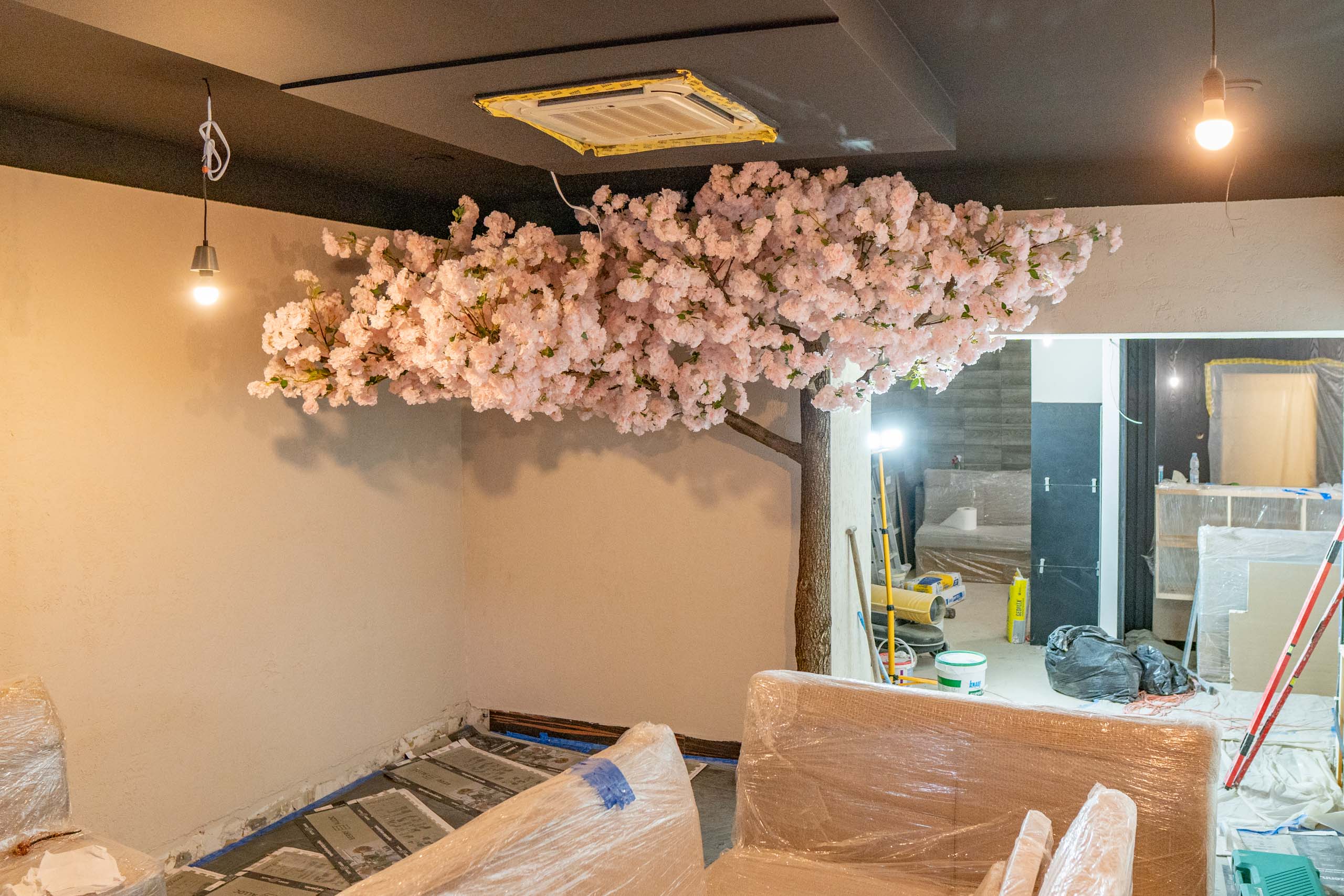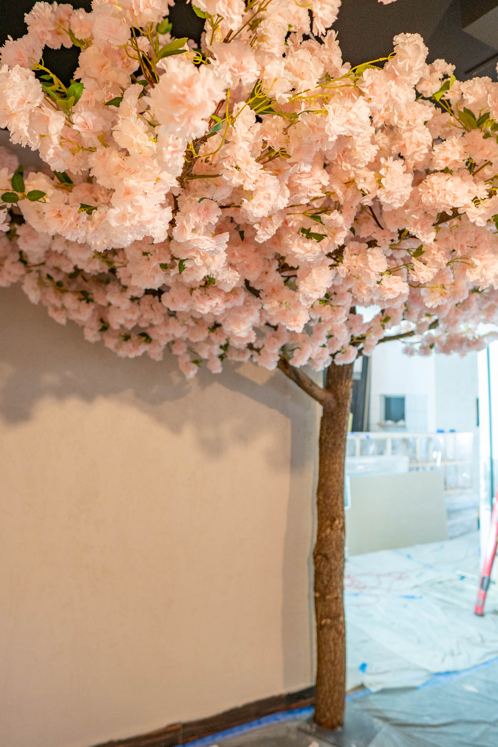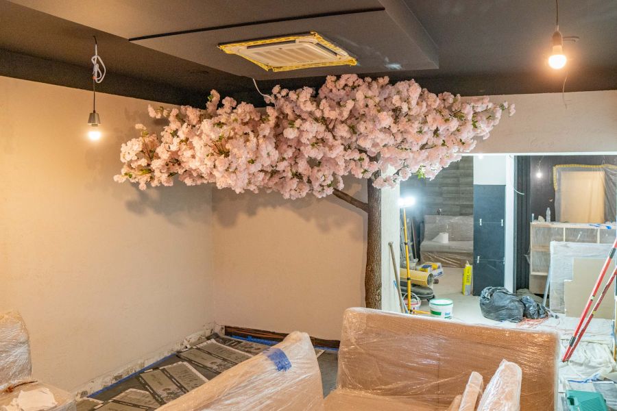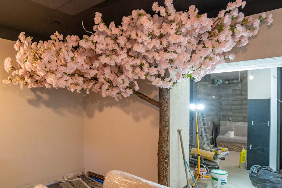 Kwitnące Sztuczne Drzewo Przyścienne 3×2,5 Restauracja- Mława